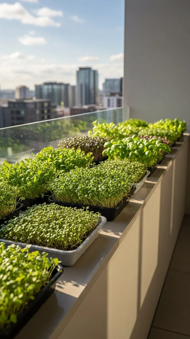 Microgreens grow fast and don’t need deep soil. Use shallow trays and place them along a bright ledge. Sprinkle seeds evenly and mist daily. Within two weeks, you’ll have fresh greens for meals. Trays are cheap and easy to store. Rotate them if sunlight hits unevenly. This is perfect for balconies with limited sun since microgreens grow well even in partial light.
