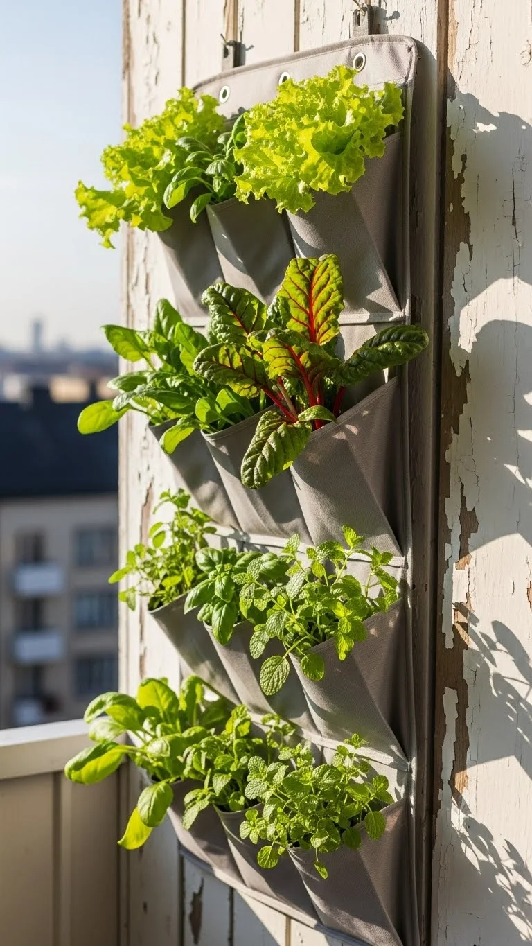 Fabric shoe organizers make great vertical planters. Fill each pocket with soil and plant small greens like spinach or lettuce. Hang it on a wall that gets morning light. Water gently since pockets drain fast. This is one of the cheapest ways to expand your growing space. Replace plants often since greens grow quickly and don’t mind tight pockets.