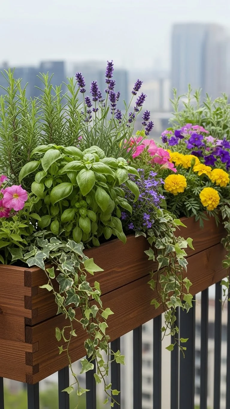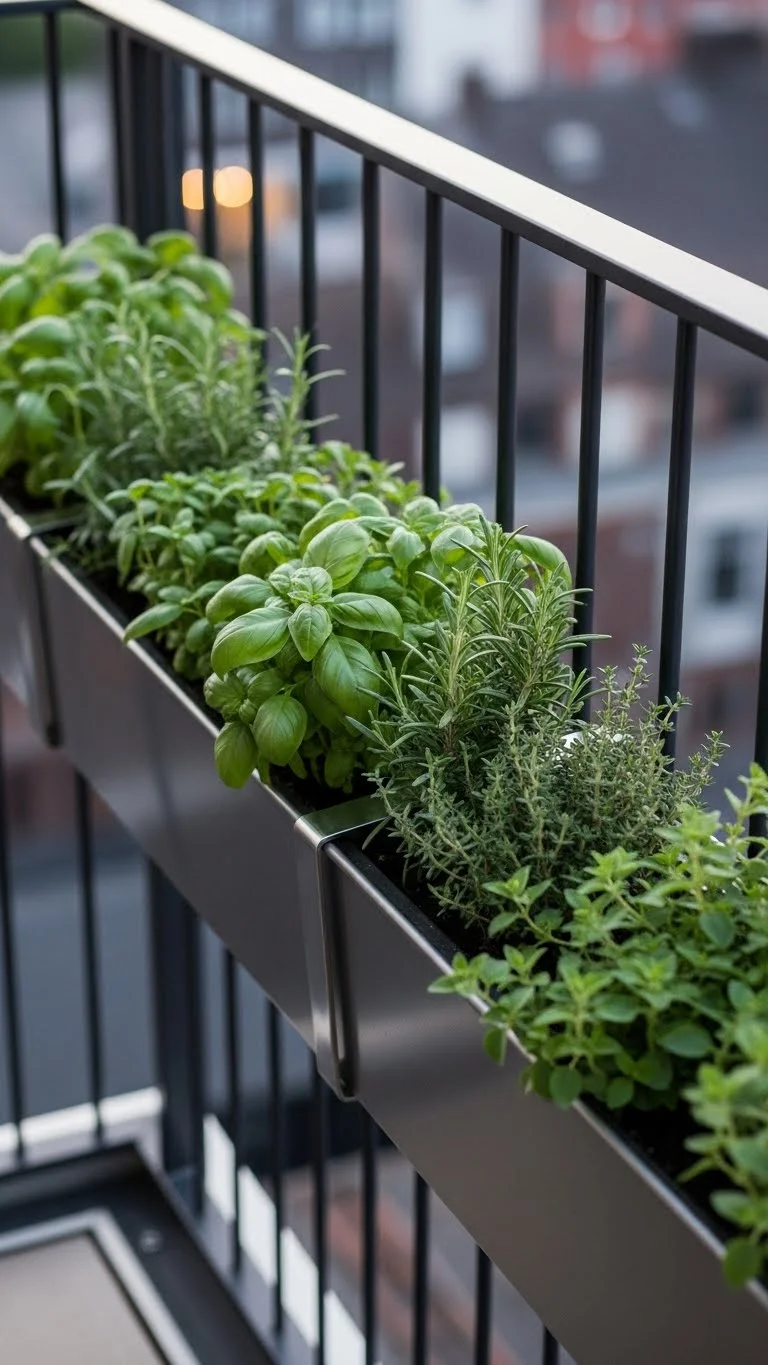 Rail planters save space and bring your herbs within reach. Try hardy types like rosemary or oregano. They grow well in long containers and handle outdoor conditions. Pick rail planters with secure brackets to avoid wobbling. Add a mix of colors by planting marigolds or small flowers between herbs. Water lightly each morning. This setup works even on balconies that face busy streets.