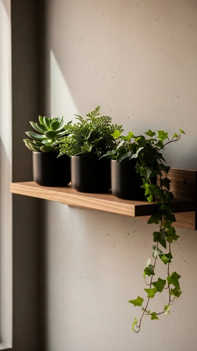 A half-wall shelf sits higher than normal shelves and frees floor space. Use it for lighter pots like herbs and small flowers. Make sure the shelf is fixed securely. Keep plants that need regular access at eye level. This simple idea helps you add more greenery without clutter.