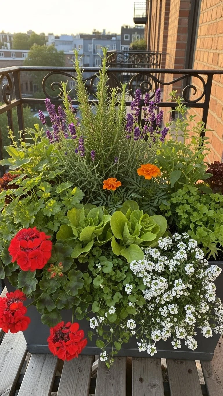 A single large pot can hold several plants. Mix herbs, leafy greens, and flowers for variety. Keep taller plants in the center and smaller ones around the edges. Use quality soil so everything grows well together. This setup cuts down on watering and is great for balconies with limited space. It also gives a full, rich look without many pots.
