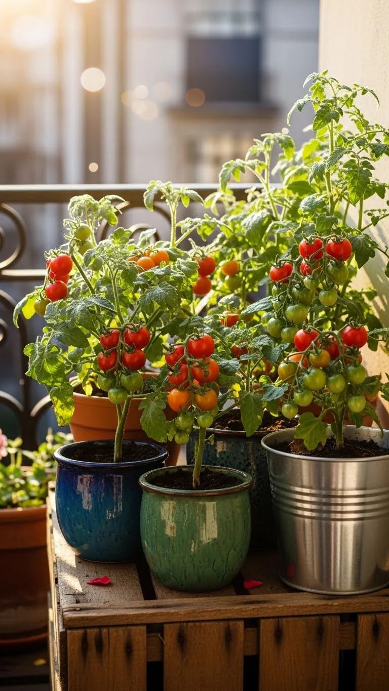 Dwarf tomatoes grow well in small spaces. Use one sturdy pot per plant and choose a sunny corner. Add a small stake or cage to support branches. Tomatoes enjoy warm spots, so balconies facing the sun are perfect. Use affordable potting soil and add compost if available. Keep the soil moist but not soggy. You’ll get a steady supply of small tomatoes without using much room.