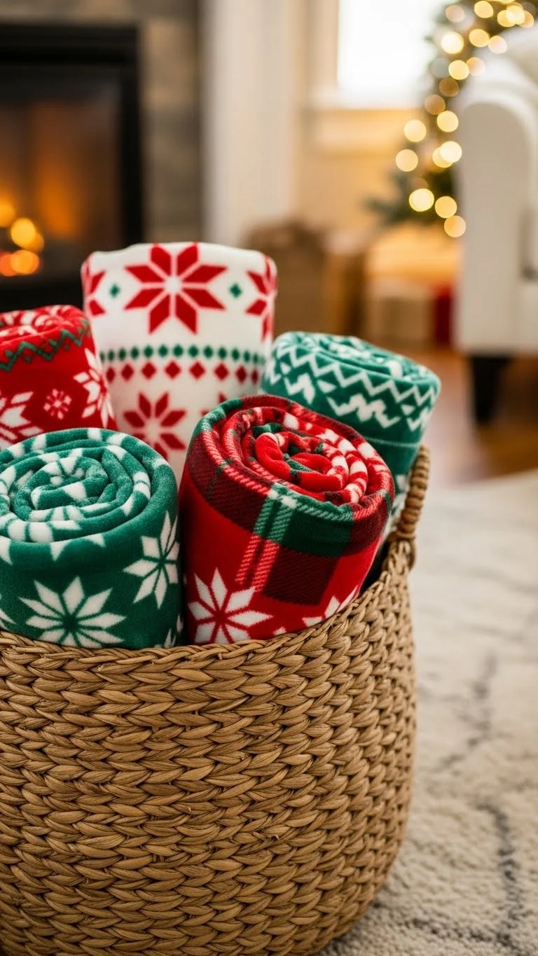 Fill a basket with soft blankets. Roll them neatly and place the basket near the sofa. Use plaid, knit, or fluffy textures. This adds both décor and function. You can reuse any blankets you already have. A basket makes the room feel organized and warm at the same time. It’s simple, cozy, and practical.