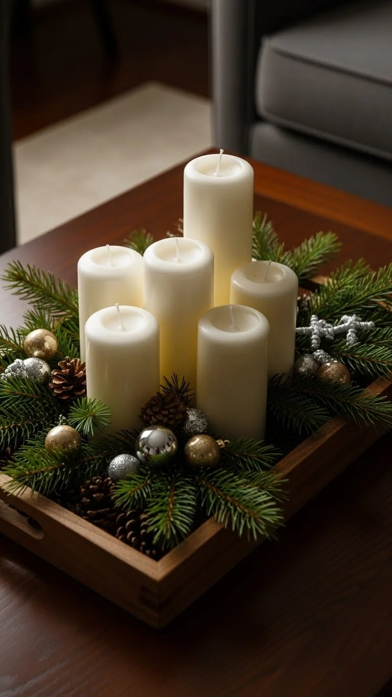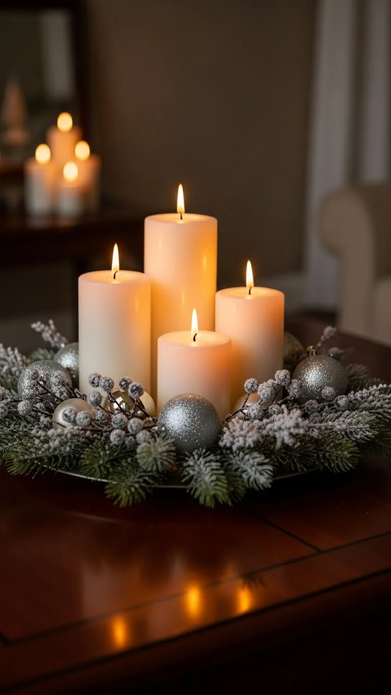 Use candles to fill your room with soft light. Mix tall and short candles on a tray. Add pine sprigs or ornaments around them. Use flameless candles if you want a safer option. Keep the color palette neutral so the light stands out. This creates a calm atmosphere that works well all season.