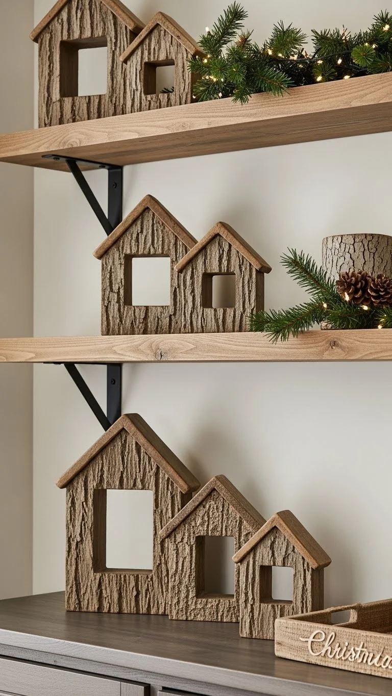 Wood décor pieces add warmth. Use small crates, wooden stars, or simple wooden trees. Place them on shelves or near the fireplace. You can also sand and paint old wooden items for a new look. This style pairs well with greenery and soft lights. It’s affordable and easy to mix with your current décor.