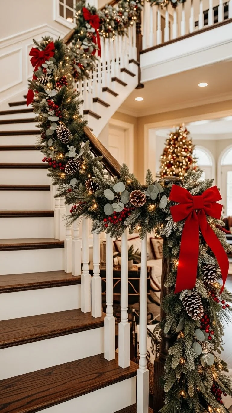 20. Garland-Wrapped Stair Rails