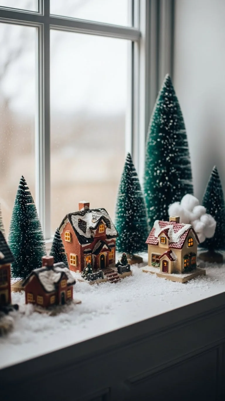 A small Christmas village adds whimsy to any room. Use miniature houses, trees, and cotton “snow” for a charming display. Place it on windowsills or narrow shelves, adding battery-operated lights for an enchanting glow. DIY versions from cardboard and paint provide an inexpensive alternative. These little scenes make corners feel magical.