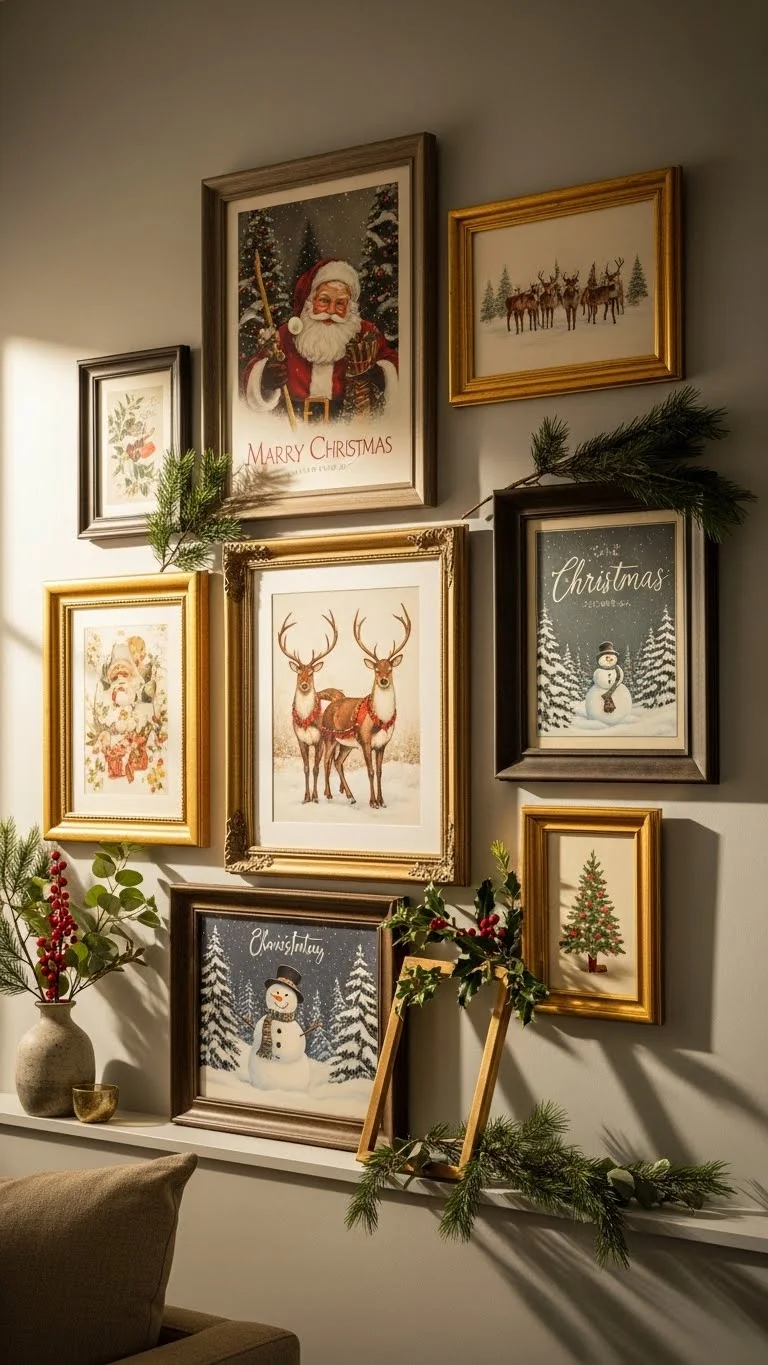 Holiday prints instantly transform walls. Use simple frames you already own and swap in festive artwork like snowy scenes, trees, or stars. Print free designs at home or lean larger prints against a shelf for minimal effort. A small gallery of three frames or a single statement piece brings seasonal charm without clutter.