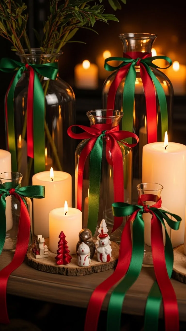 Ribbons can decorate almost anything. Tie them around vases, candle holders, chair backs, or doorknobs for instant holiday charm. Mixing a couple of colors keeps the effect cohesive. Ribbon is inexpensive, reusable, and adds a seasonal flourish with minimal effort.