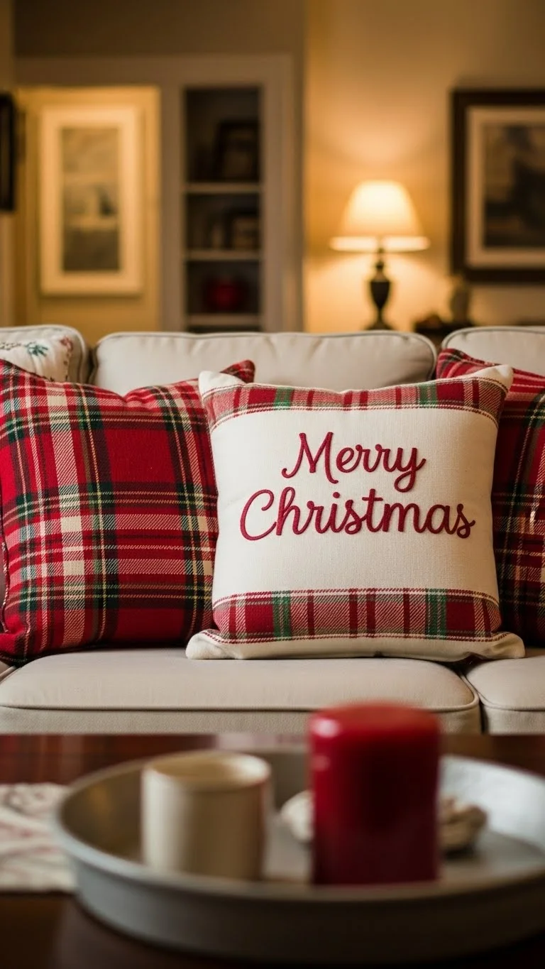 Throw pillows are an easy way to inject color and comfort. Use festive pillow covers with patterns like plaid, snowflakes, or knitted textures to refresh your existing pillows. A mix of solids and playful designs creates balance, while thrifted covers or DIY iron-on shapes keep costs low. Place them on sofas, chairs, and beds to tie rooms together and make seating areas feel inviting.