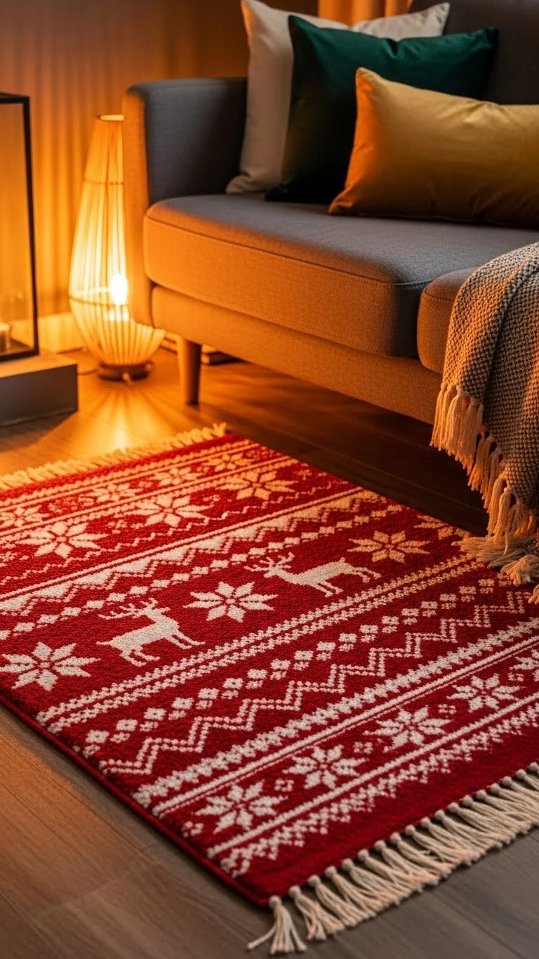 Throw rugs add both color and comfort. A small rug near a sofa, bed, or table can transform a space. Simple patterns or subtle seasonal colors are enough. Washable rugs offer a reusable, budget-friendly option year after year. Pair with pillows or blankets for a coordinated look.