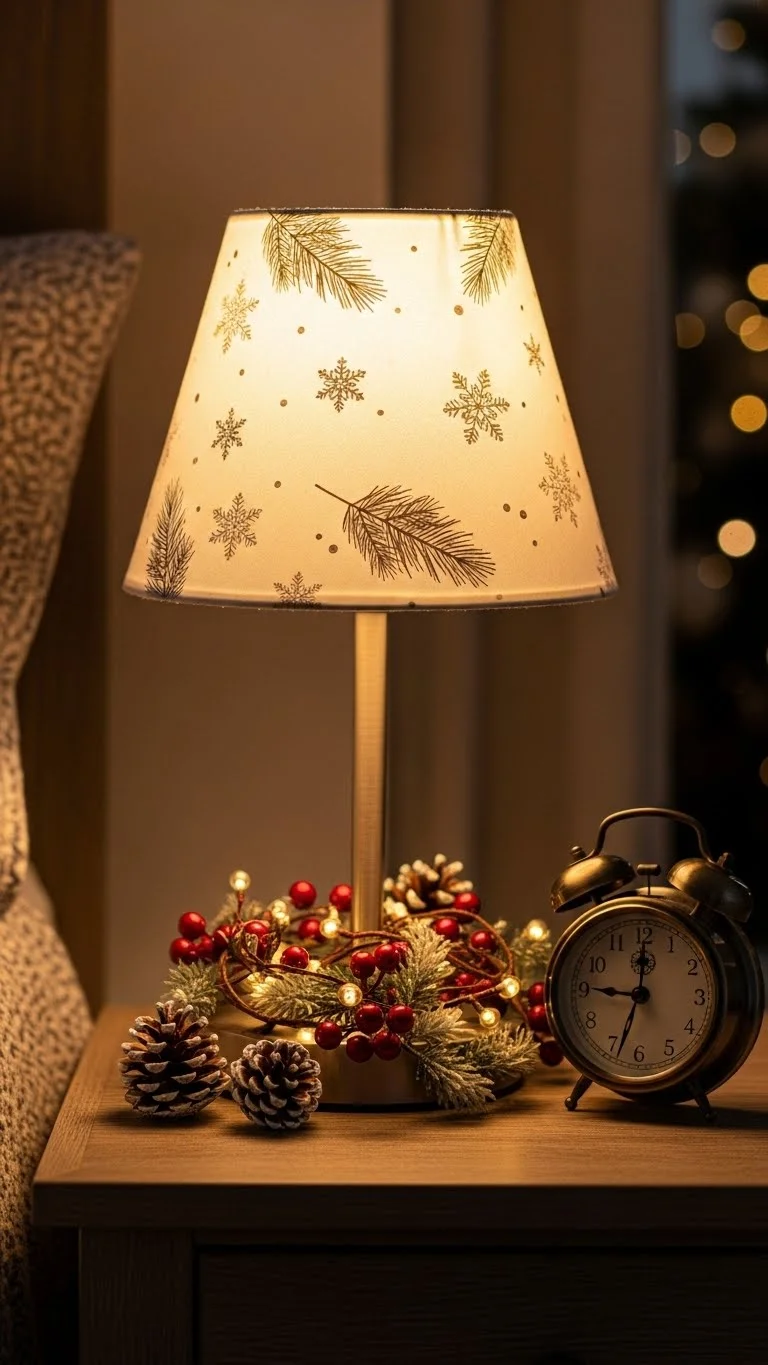Changing lampshades is a simple way to infuse holiday charm. Choose subtle patterns or tie ribbon around existing shades. Adding a sprig of greenery nearby completes the seasonal look. It’s a small touch that makes bedrooms feel ready for cozy winter evenings.