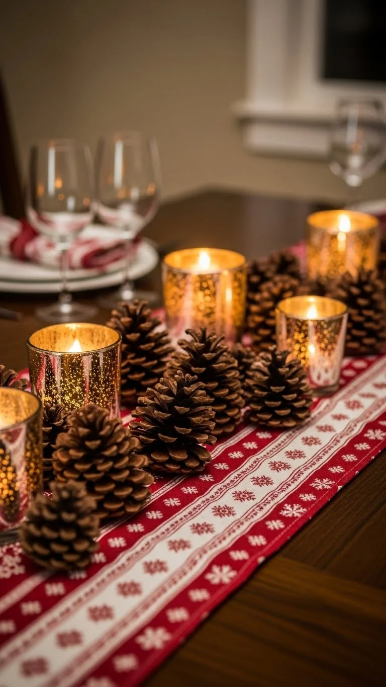 Table runners bring color and cohesion to dining and entryway tables. A plaid, red, or embroidered runner instantly sets the holiday mood. Layer candles or greenery along it for a centerpiece effect. DIY fabric runners are simple, inexpensive, and easy to store.