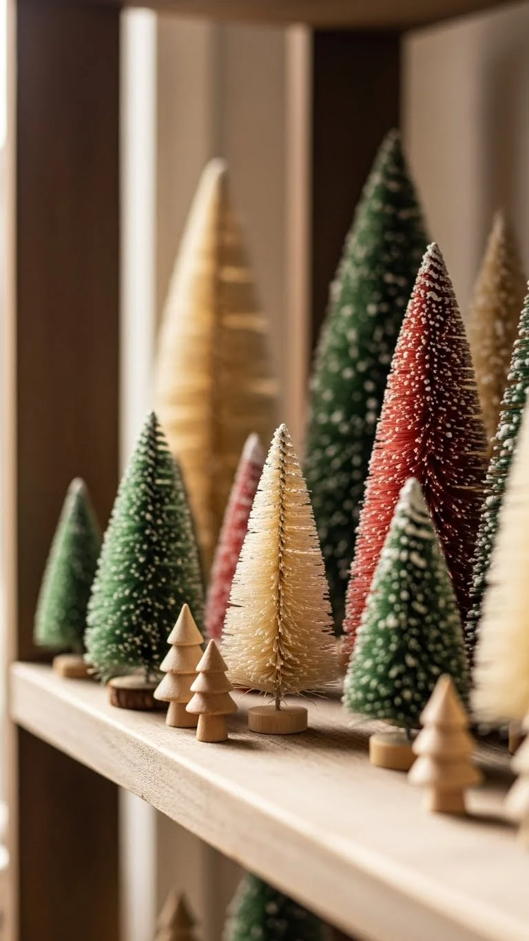 Miniature trees are perfect for corners, shelves, or tables. They can be real clippings for a natural scent or small artificial trees reused year after year. Grouping two or three trees of different heights creates visual interest, while wrapping bases in burlap adds warmth. Battery-operated lights or a few tiny ornaments can enhance the festive effect, and DIY cone-shaped trees made from cardboard or yarn provide a fun, inexpensive alternative.