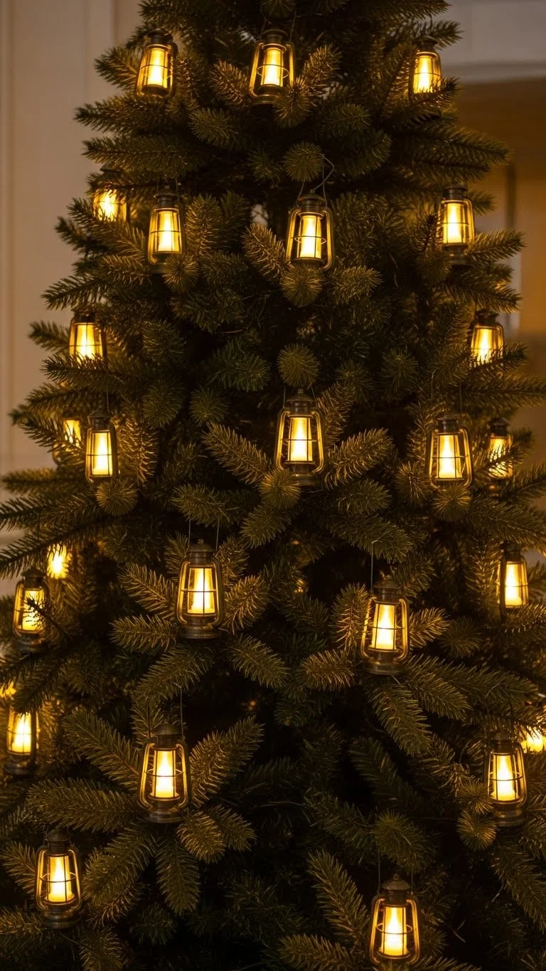 Small lantern-shaped lights add charm. Look for low-cost LED sets online. Spread the lanterns throughout the tree to break up regular string lights. Their soft glow creates pockets of warmth. You can pair them with rustic décor or simple ornaments. This is a good option if your tree looks flat or too dark. The lanterns act like mini focal points.