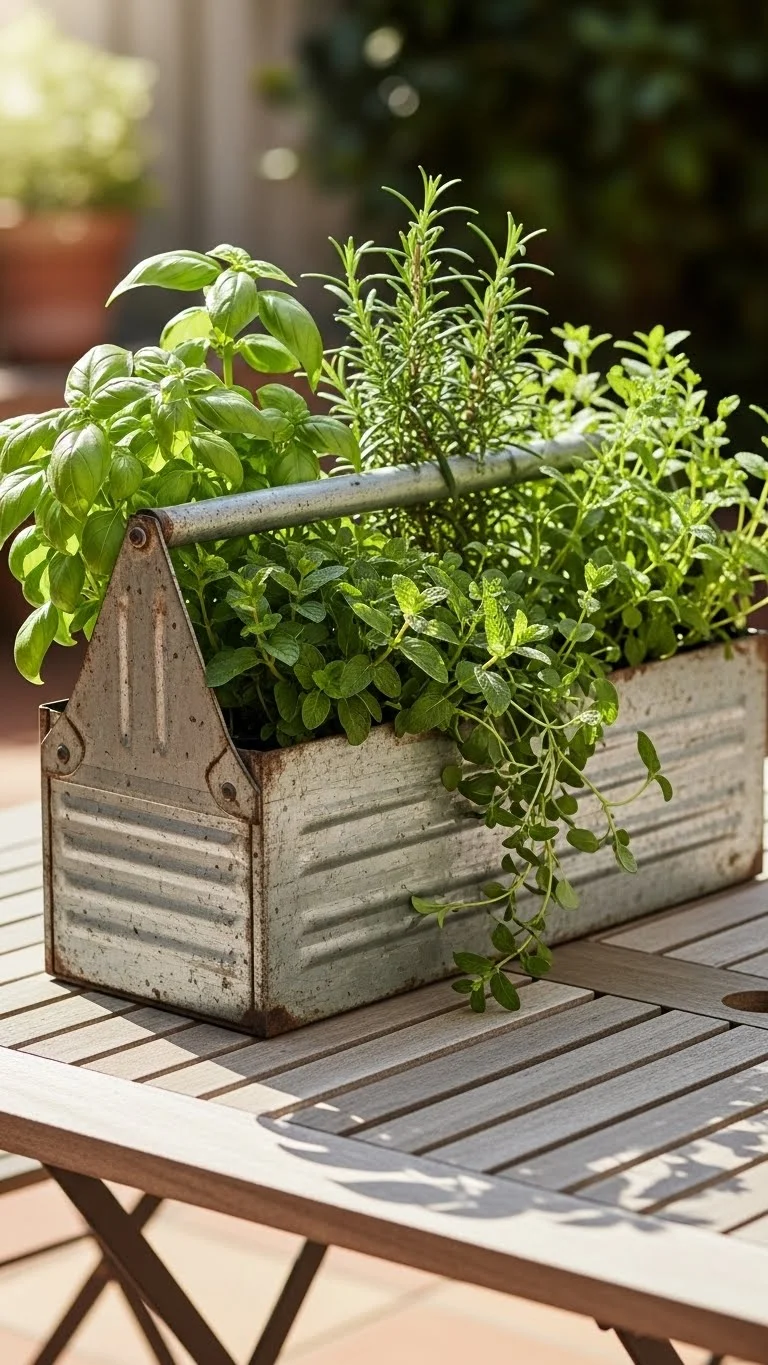 A toolbox is sturdy and deep enough for herbs. Line it with plastic and add soil. Plant rosemary, thyme, or oregano. Keep the lid open and use the handle as decoration. Toolboxes look great on picnic tables or outdoor shelves. They hold moisture longer than buckets and suit rustic styles. This is a cheap and fast project for anyone who likes unusual containers.