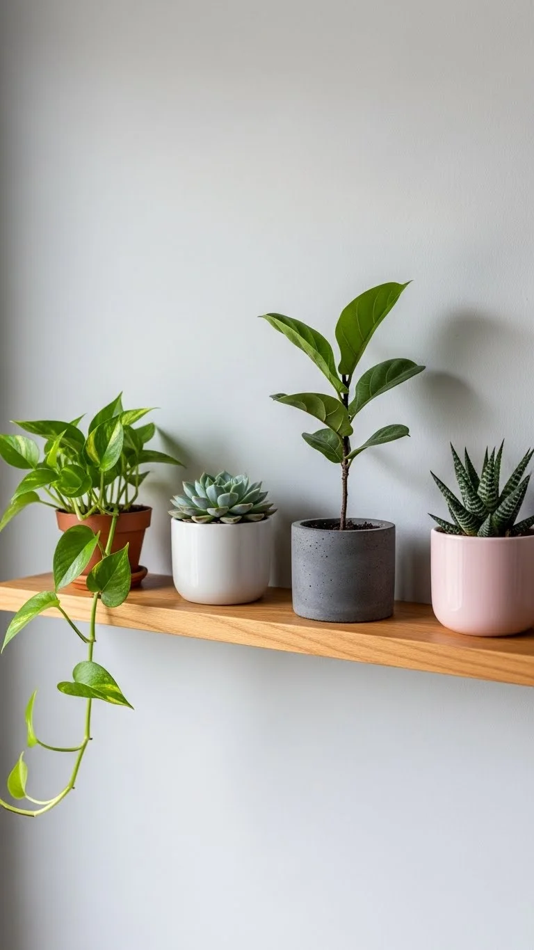 A simple shelf becomes a mini indoor garden. Choose small pots that fit neatly. Place plants that enjoy bright light. Mix textures—ferns, trailing vines, small succulents. Shelves keep things tidy and save floor space. You can start with one shelf and expand later. It’s an easy project for renters and small rooms.