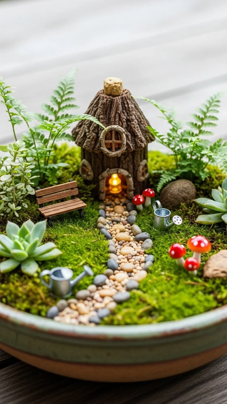 A wide bowl makes a great fairy garden. Use small plants, pebbles, and moss. Arrange tiny paths and figures if you like. It’s a small, charming project for any table. Bowls don’t need much soil, so water lightly. This fits well indoors or outdoors. It’s fun for kids and adults who like creative plant setups.