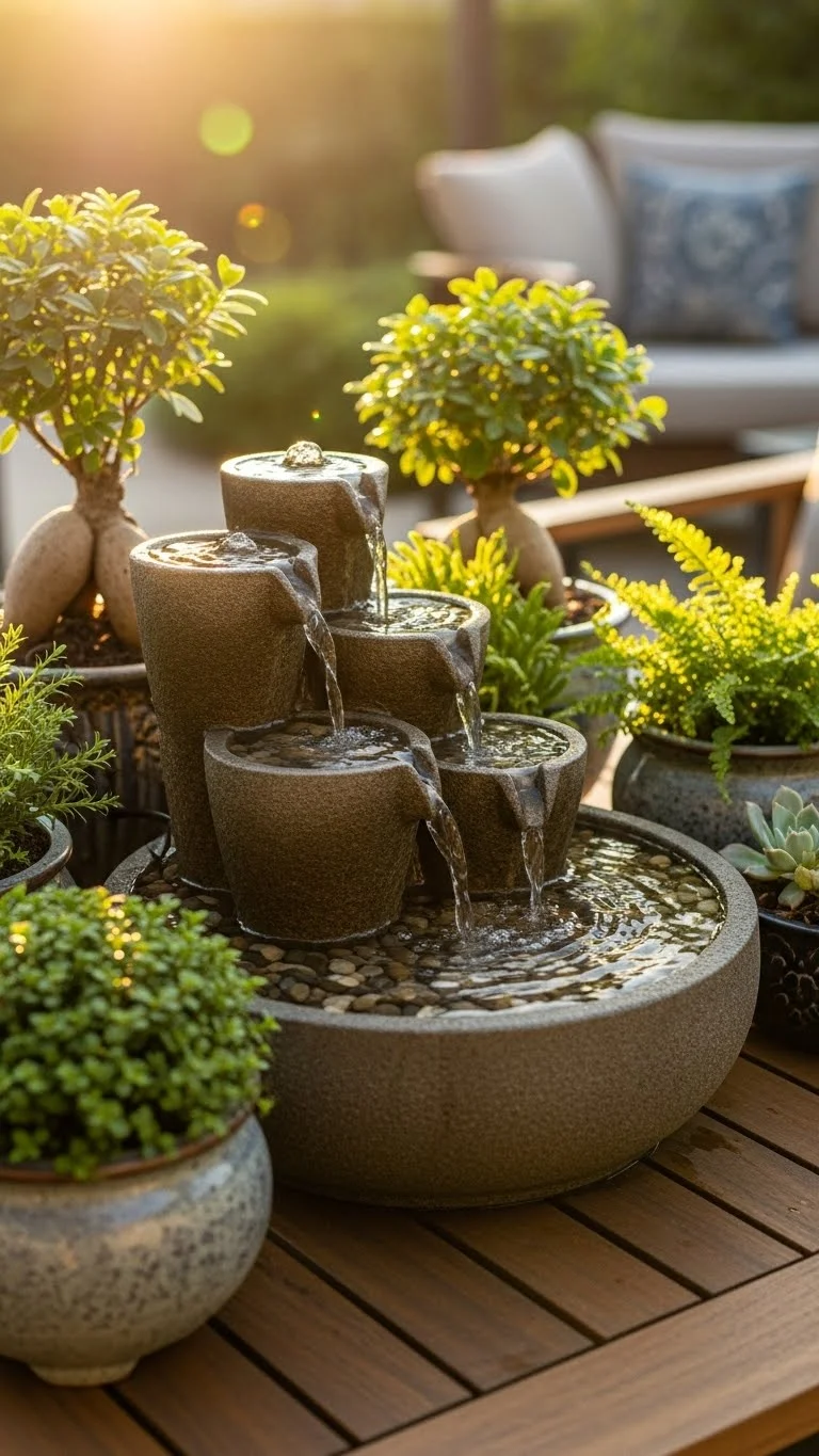 A small fountain adds a gentle sound to your backyard. You can buy one cheaply or make one using a pump and a bowl. Keep it near a seating area. Clean it every few weeks to avoid algae. Add stones around the base for a natural feel. The sound of trickling water creates a peaceful mood.