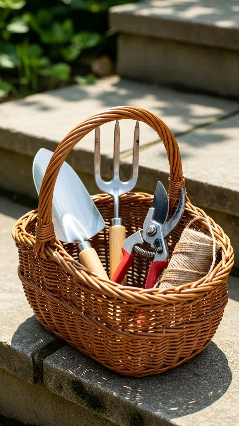A tool basket saves time. Keep gloves, pruners, and a trowel inside it. Store it near the back door. This helps you handle quick tasks without searching for tools. It also keeps everything organized. Choose a sturdy basket that can handle dirt. This simple habit makes garden work smoother.