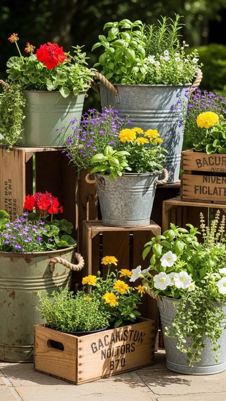 Old containers make charming planters. Use buckets, crates, or tins. Drill holes for drainage. Add soil and hardy plants. Place them in clusters. This adds personality to your backyard without spending much. It’s also a smart way to reuse items you already have.