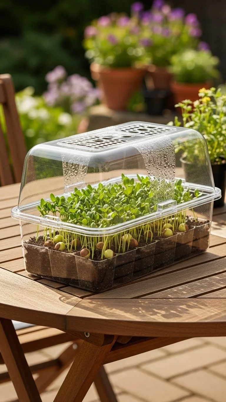 A mini greenhouse tray helps you grow new plants early. Use small cells filled with potting soil. Add seeds and keep them moist. Place a clear lid over the tray. Put it in a bright spot. The warm air inside helps seeds grow faster. Move the young plants outside once they are strong. This saves money because you can grow your own flowers and vegetables.