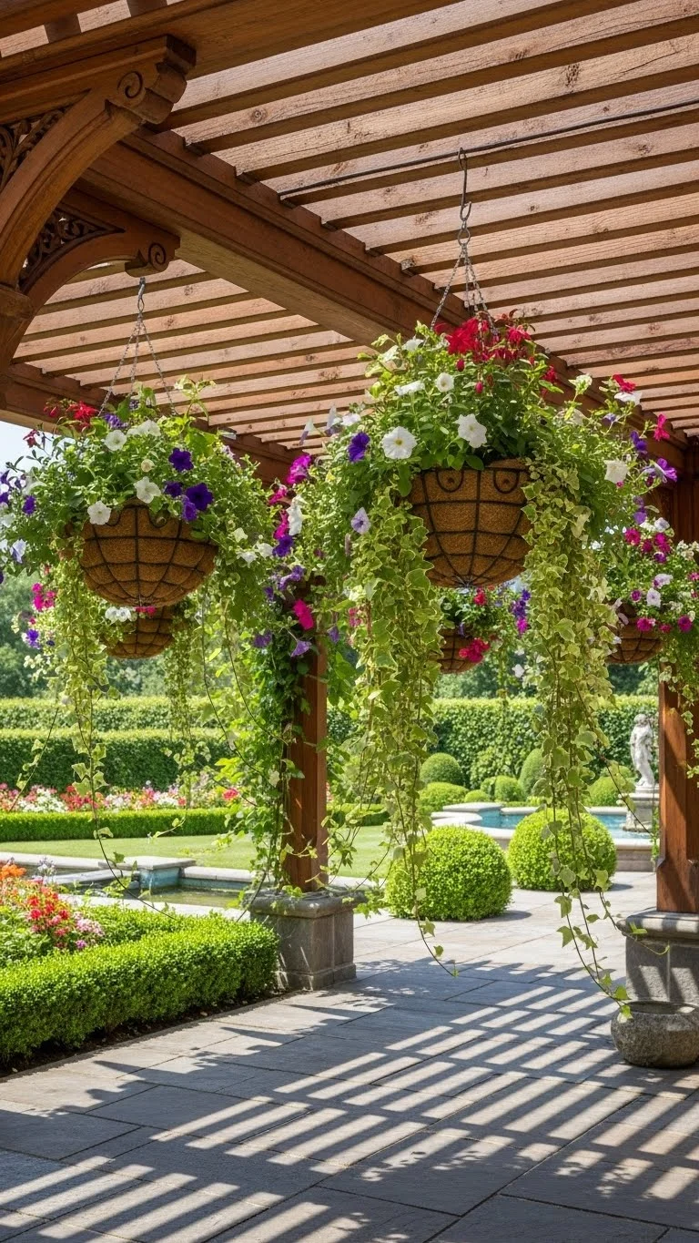 Hanging baskets draw the eye upward. They’re great when ground space is tight. Pick lightweight baskets. Add a mix of trailing plants and upright flowers. Water them slowly so the soil absorbs fully. Add a small amount of compost every month. Hang them near doors, patios, or seating spots. They add color and shape without cluttering the ground.