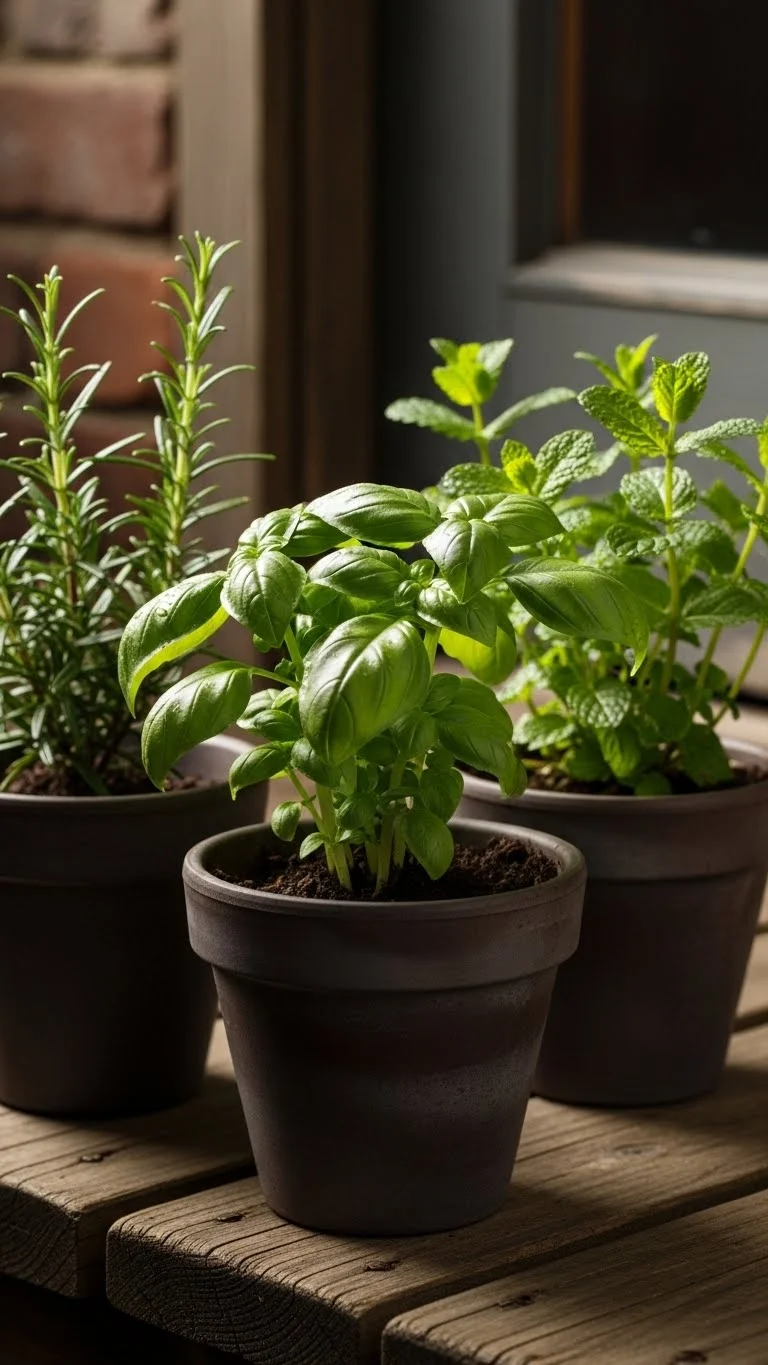Herbs grow well in pots. Keep them near your kitchen door for quick access. Choose easy types like basil, mint, or parsley. Use small containers so they stay manageable. Water lightly and trim often. This keeps them healthy and prevents them from growing wild. It also adds a pleasant scent every time you step outside.