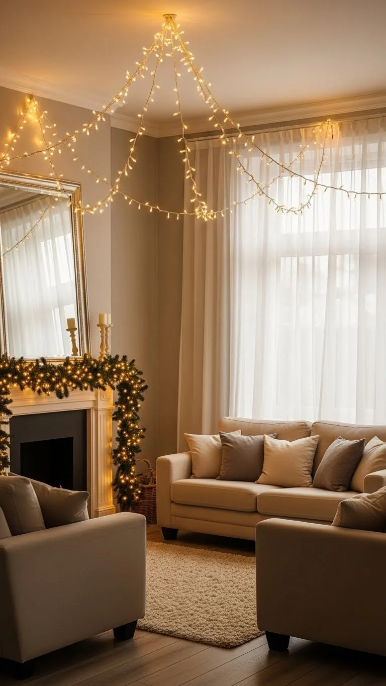 Soft lighting makes every detail feel richer. Use warm white string lights around windows, mantels, and furniture edges. Avoid colored lights—they can take away from the high-end feel. Mix lights with candles to create layers. If you want a budget shortcut, switch regular bulbs to warm-toned LEDs. The color shift alone creates a smoother, calmer glow during the holidays.
