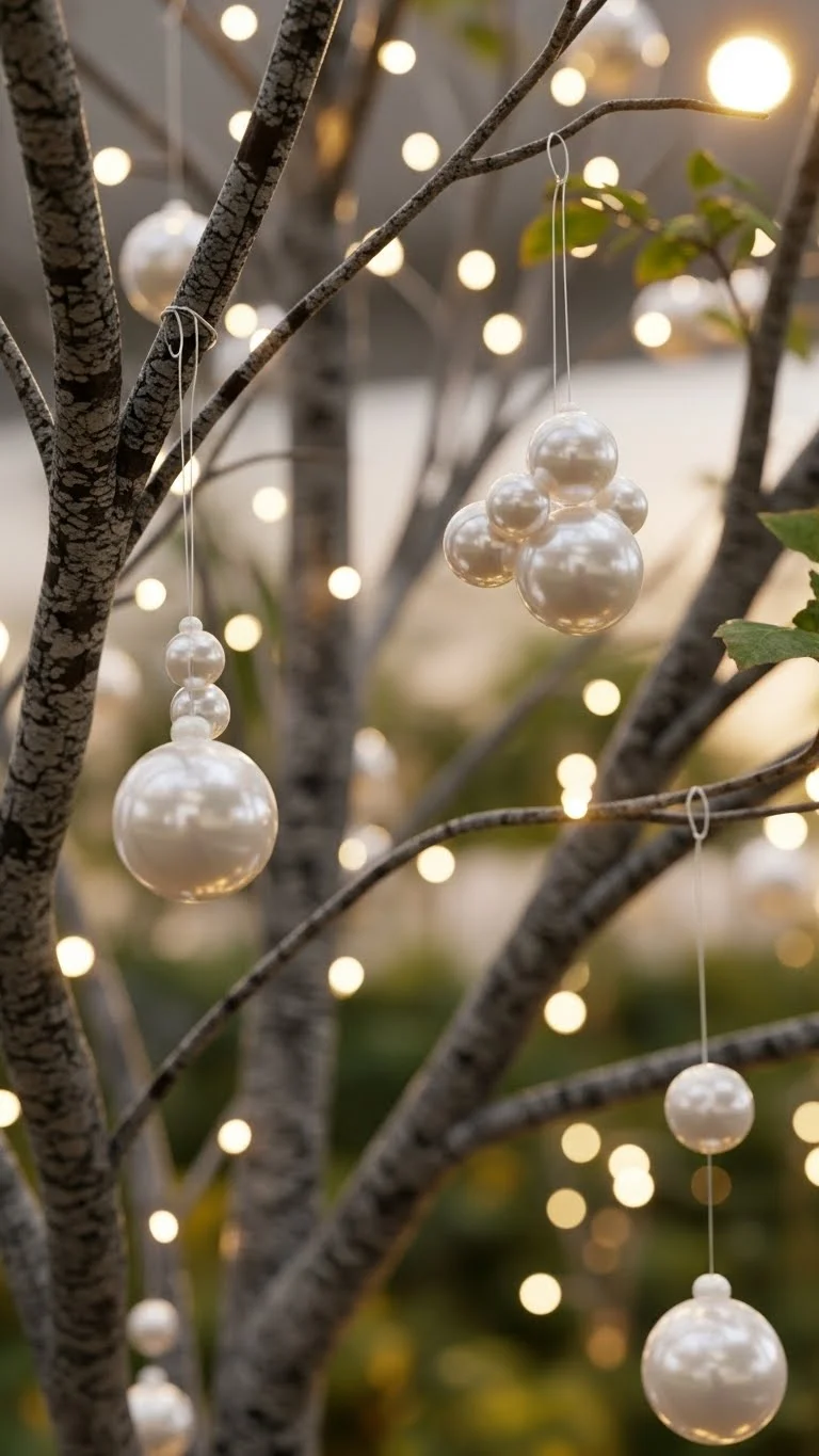 Pearl ornaments add gentle shine without feeling flashy. Hang them evenly around the tree to soften bold metallics. You can also scatter them across a garland or bowl. For a quick DIY option, spray-paint basic ornaments with pearl-finish paint. This color looks beautiful with gold, silver, and champagne tones.