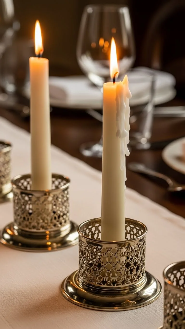 Candle rings add detail without much effort. Choose metallic ones with small leaves or beads. Place them at the base of tall candles on your table or mantel. They create a finished look quickly. If you’re on a budget, make your own using thin wire and metallic beads. Keep the design light and minimal.