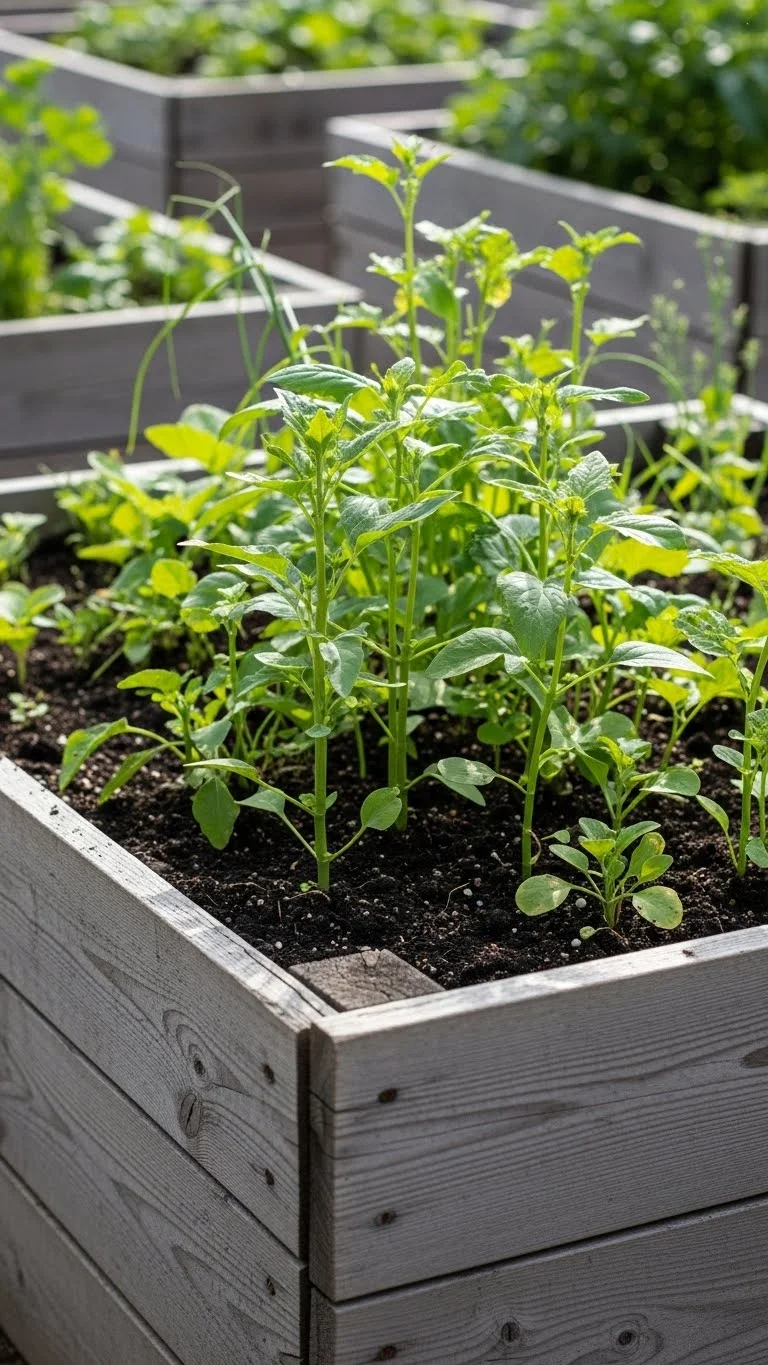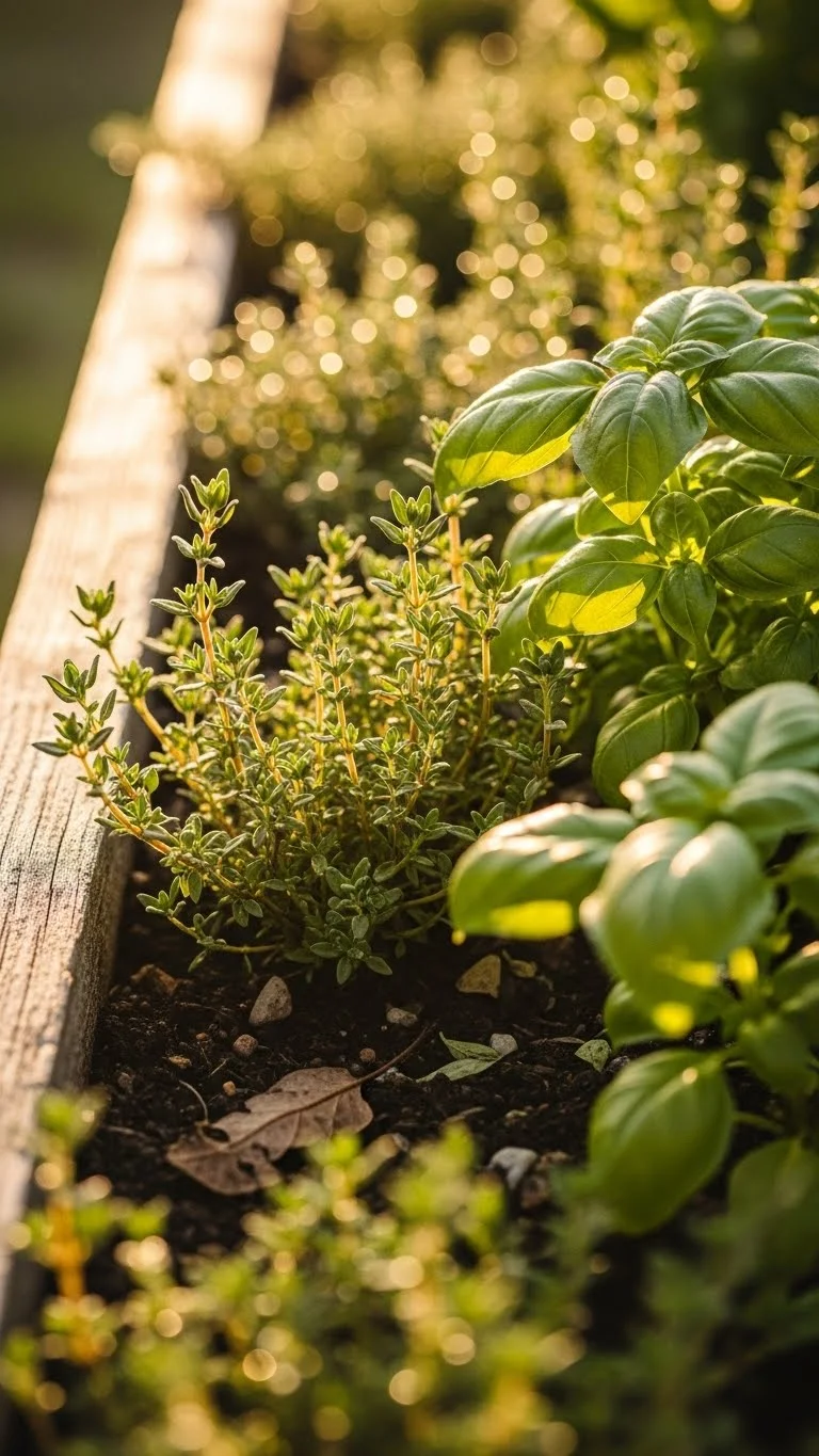 Herbs can protect the edges of your bed. They fill small spaces and add gentle fragrance. Many herbs grow close to the ground, making them perfect for borders. Thyme, basil, and chives keep soil covered and reduce weed activity. They also attract pollinators. Planting edges helps you use every inch of space without overcrowding. It’s a low-cost way to fill the bed with useful plants. Start with small seedlings or direct sow if you want to save money. Keep herbs trimmed so they don’t shade your main crops. Over time they form a neat frame around your vegetables.