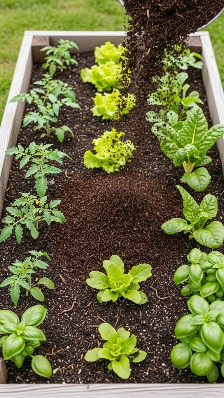 Refreshing the top layer with compost keeps beds active. Plants respond quickly when the surface stays rich and loose. You don’t need to dig deep. Just spread a thin layer and scratch it in with a small hand rake. This avoids disturbing roots. Use homemade compost to cut costs. Even kitchen scraps, dried leaves, and grass clippings break down into something helpful. Adding compost every few weeks keeps soil alive. It also helps water soak in rather than run off. Beds that stay crumbly produce stronger plants because roots access nutrients without effort. Try storing a small bucket near your garden so you can top up whenever the soil looks flat or pale. The results show up fast in greener leaves and steady growth.