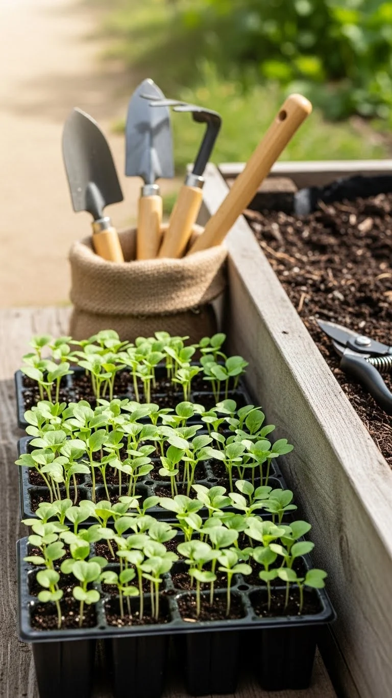 A seedling zone helps you keep young plants organized. Instead of scattering pots across your yard, group them near your beds. This makes transplanting quicker. Use simple trays or recycled containers. Keep the zone partially shaded so seedlings stay steady. When they’re ready, move them into the bed during cooler hours. This reduces stress and helps them settle. A small, tidy seedling area saves time and keeps your garden flowing smoothly.
