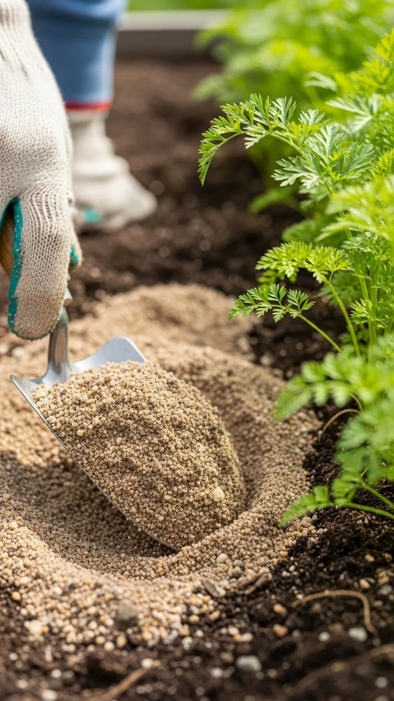 Root crops grow straighter when soil is loose. Adding sand stops clumping and helps roots push downward. Mix it into the top half of the bed before planting carrots or parsnips. You don’t need much. A small bag makes a big difference. This keeps the bed crumbly and reduces forked roots. Sandy soil also drains faster, which helps prevent soggy patches during wet days.